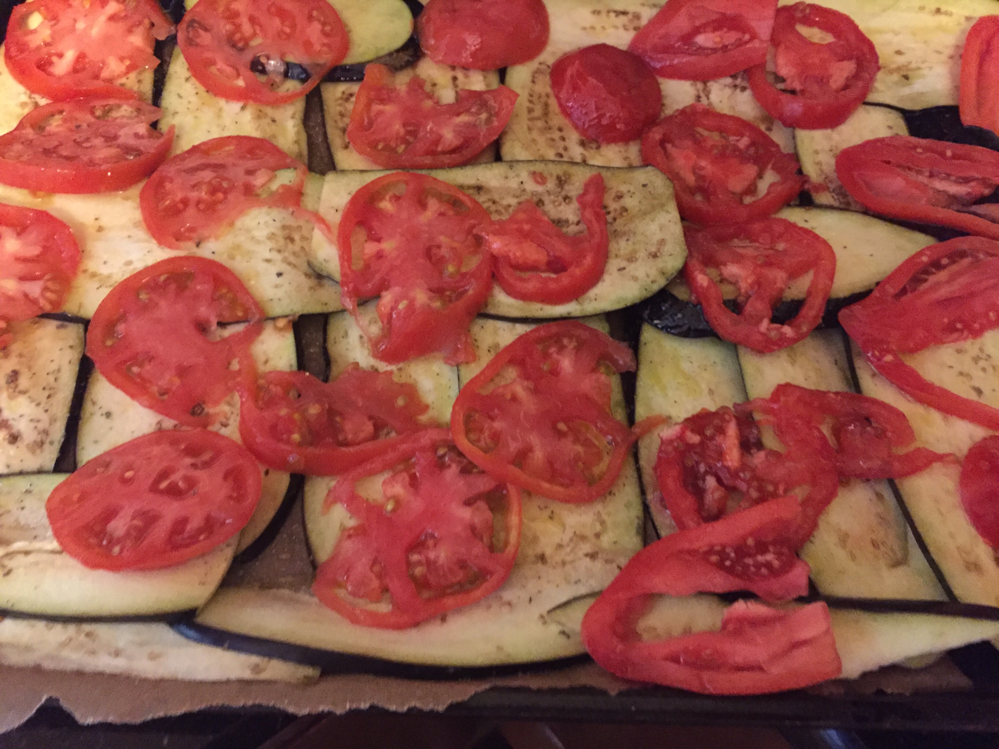 This is such an easy, quick and delicious recipe. It requires 2 main ingredients: fresh tomatoes and eggplants. I like to season with garlic salt, olive oil and Italian herbs.
