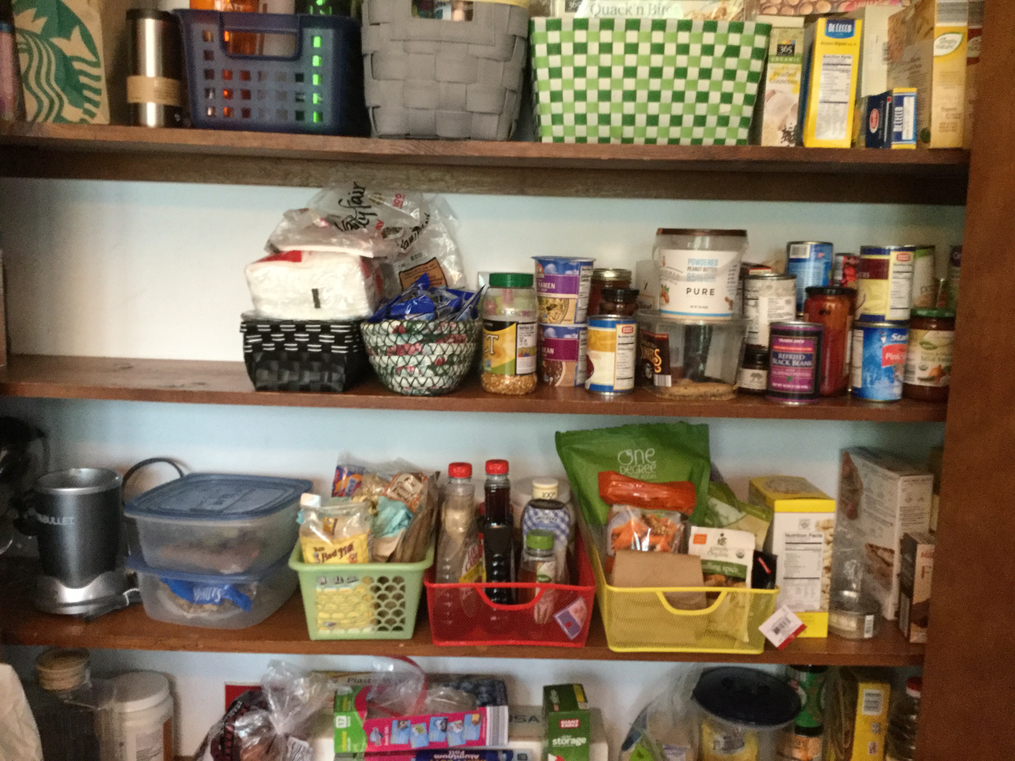 I deleted a bunch of old notes from my iPad(mostly from an IT job I recently left[freedom], and got further along in organizing my pantry. At this point, I would say I’m about 2/3 through the process. During this process, I have come to realize that I still over buy when I go grocery shopping. Sadly, I had to throw some things away because they were stale. I know it is wasteful and now that my husband and I are almost empty nesters(daughter is Freshman in college), I’m trying really hard to buy on an as needed basis.