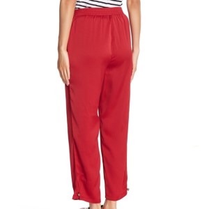 These are the perfect work from home pants. They are equipped with slash style pockets to carry around your smart phone, an elasticized waist, because we’re all spending a lot of time sitting with our devices, and they are in a vibrant red color, because sometimes we need color to perk up our day.