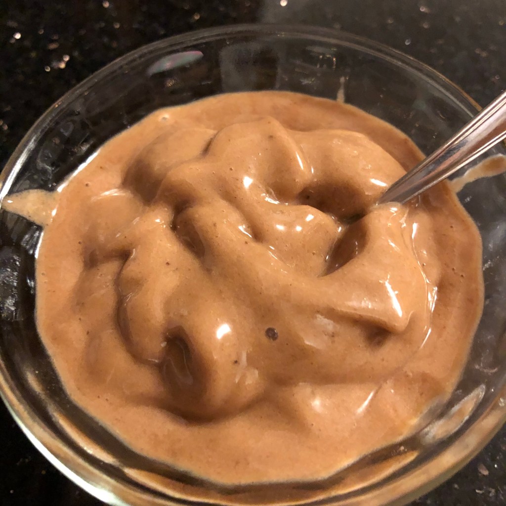Blend the two ingredients on high until it is a smooth, creamy consistency. It almost looks like a soft-serve ice cream.