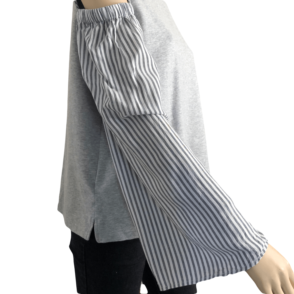 - The sleeves are combed cotton with pinstripe detailing on full sleeves