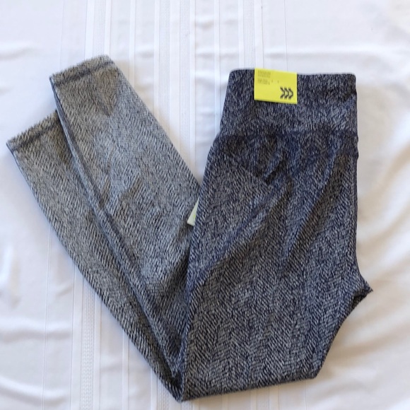 They are a high rise legging equipped with 2 side tech pockets, so you don’t have to worry about bringing your purse, and lots of stretch for added comfort,…and they are a size medium.