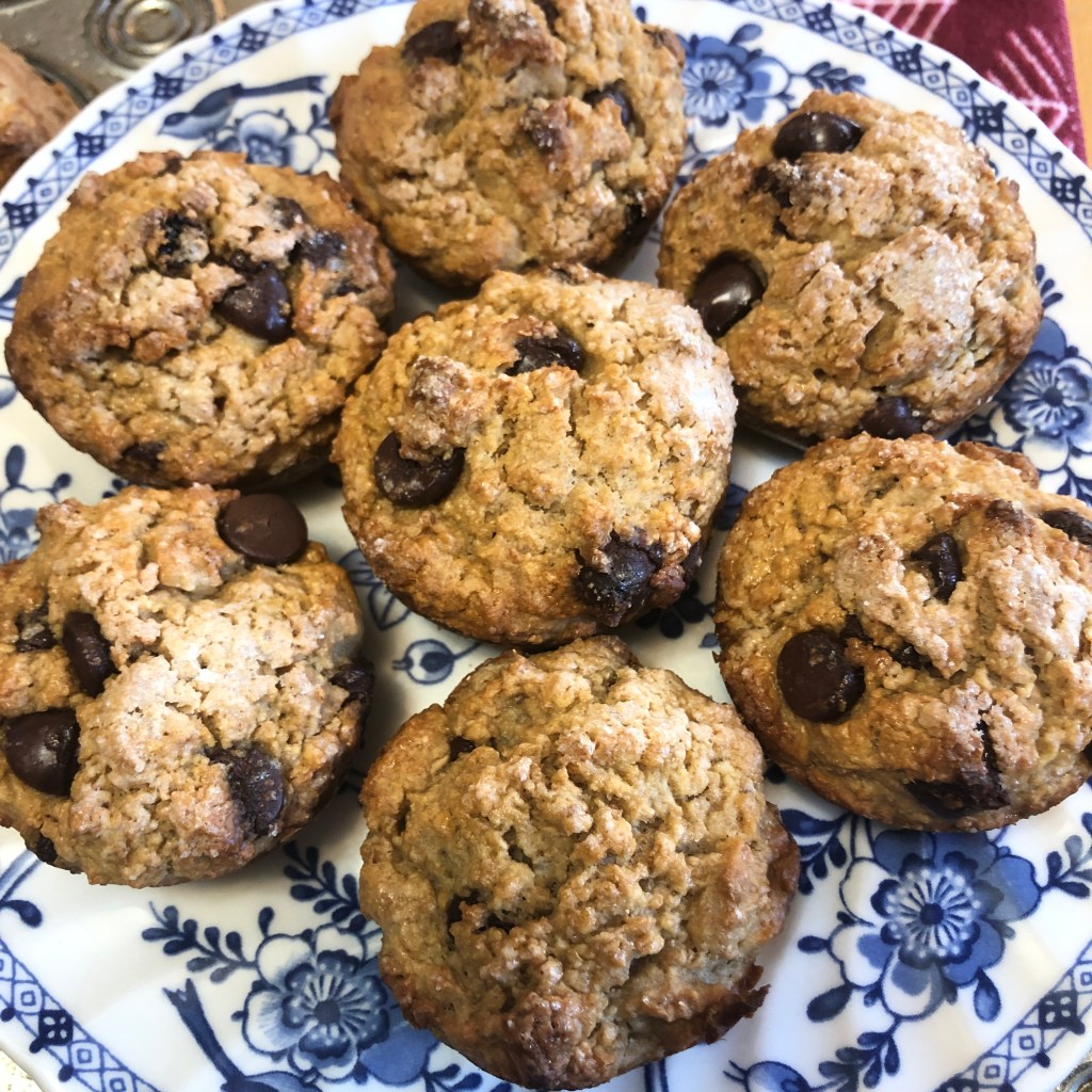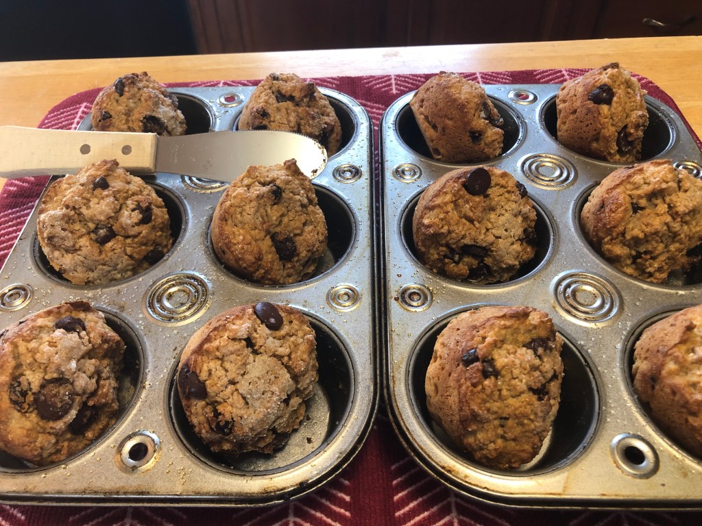 - replacing 1/4 c. flour with Hodgson Mill unprocessed wheat bran (for those of us who need a little boost with our daily constitutional, if you know what I mean).